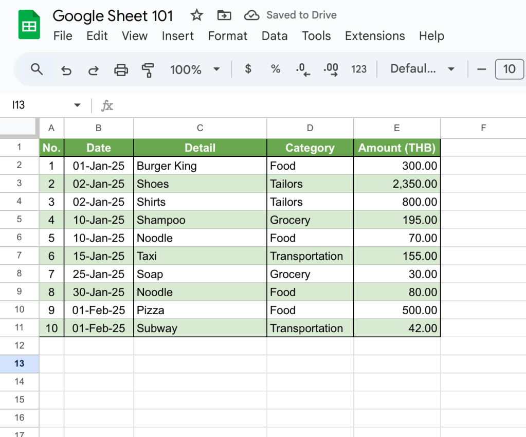 เมื่อกด Enter แล้วเราก็จะได้ผลรวมของค่าใช้จ่ายในหมวดหมู Food ทันทีเลย หลังจากนั้นก็ copy สูตรลงมาตามจำนวนหมวดหมู่ที่เราต้องการได้เลยครับ