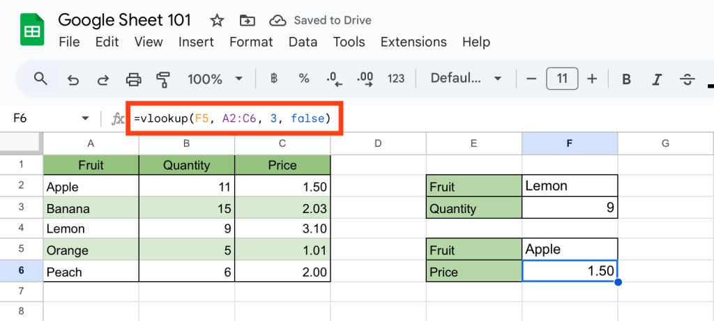=VLOOKUP(search_key, range, index, [is_sorted])